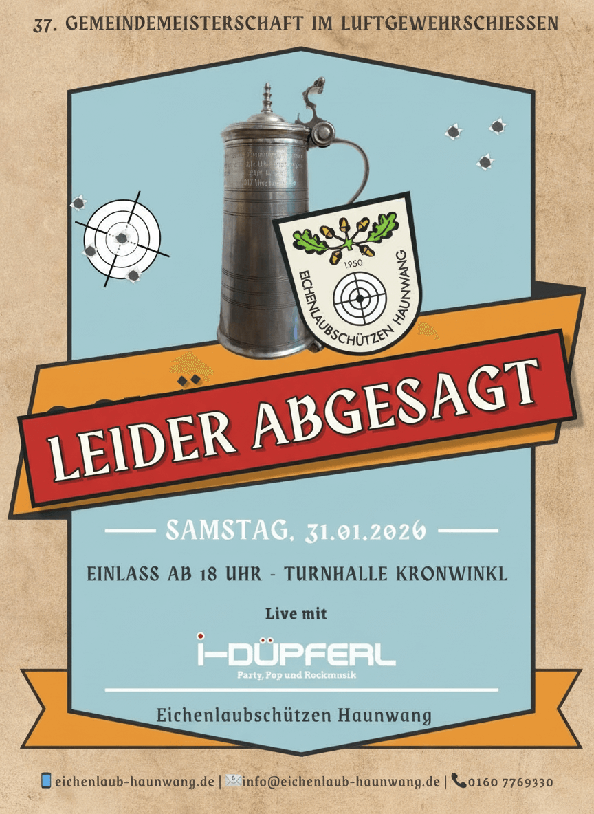 Die Vereinsmeisterschaft 2024 steht vor der Tür und wir freuen uns, Ihnen die Termine für dieses aufregende Event bekannt zu geben. In diesem Jahr finden die Wettkämpfe an folgenden Tagen statt: 24.04.2024, 15.05.2024, 04.09.2024 und 30.10.2024. Geschossen werden jeweils 20 Schuss, die Wettkämpfe beginnen jeweils um 19 Uhr.